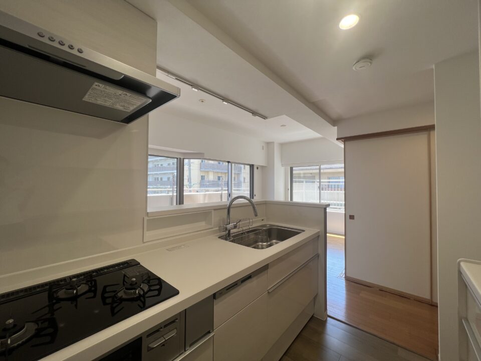 スペパ、タイパに優れるⅡ型キッチン。対面と壁付けの良いとこ取りで、家事効率はもちろん二人での調理もしやすく、家族とのコミュニケーションが図れるキッチンです。