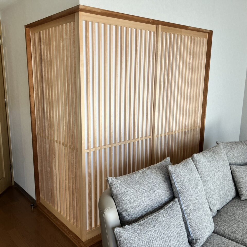 ノーマンジャパンのウッドシャッターを設置。8ヶ所のルーバーをそれぞれ自由に角度を変えることができ、光や風を取り込みながら外からの視線を遮ることができます。