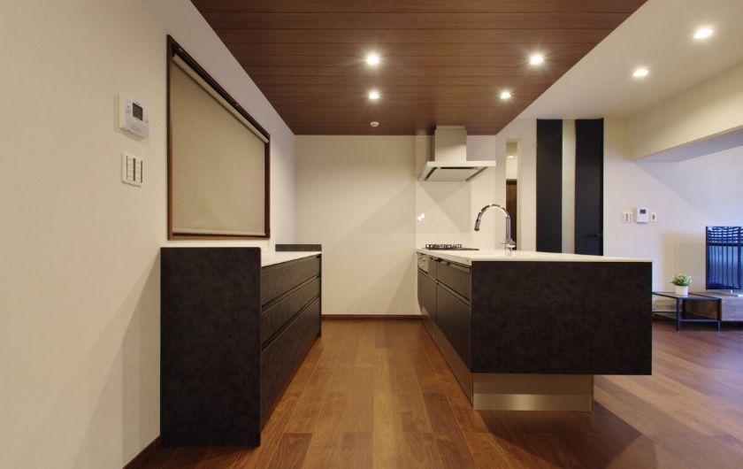 まるで空中に浮いているようなデザインのキッチン。空間にも広がりが感じられます。