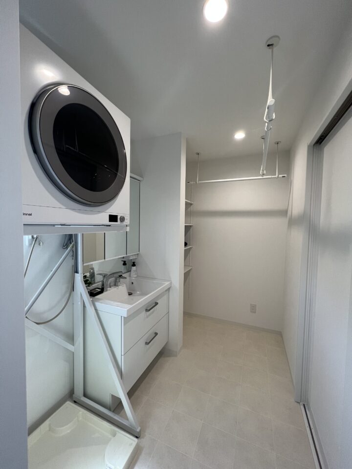 洗面室の横に分けてランドリールームを設けることで、洗濯機や洗濯物などが、