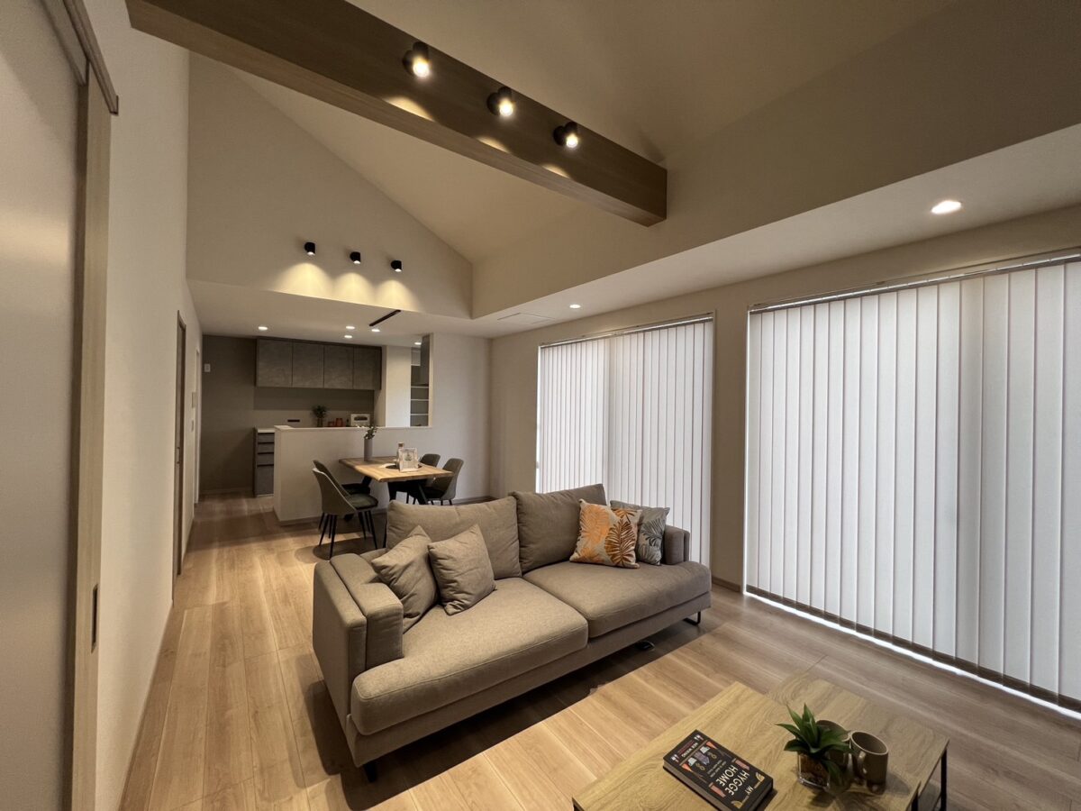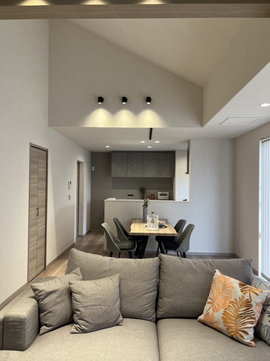 LDKが開放的に感じられる勾配天井で、家族が集まりくつろげる、ゆったりとした空間になりました。