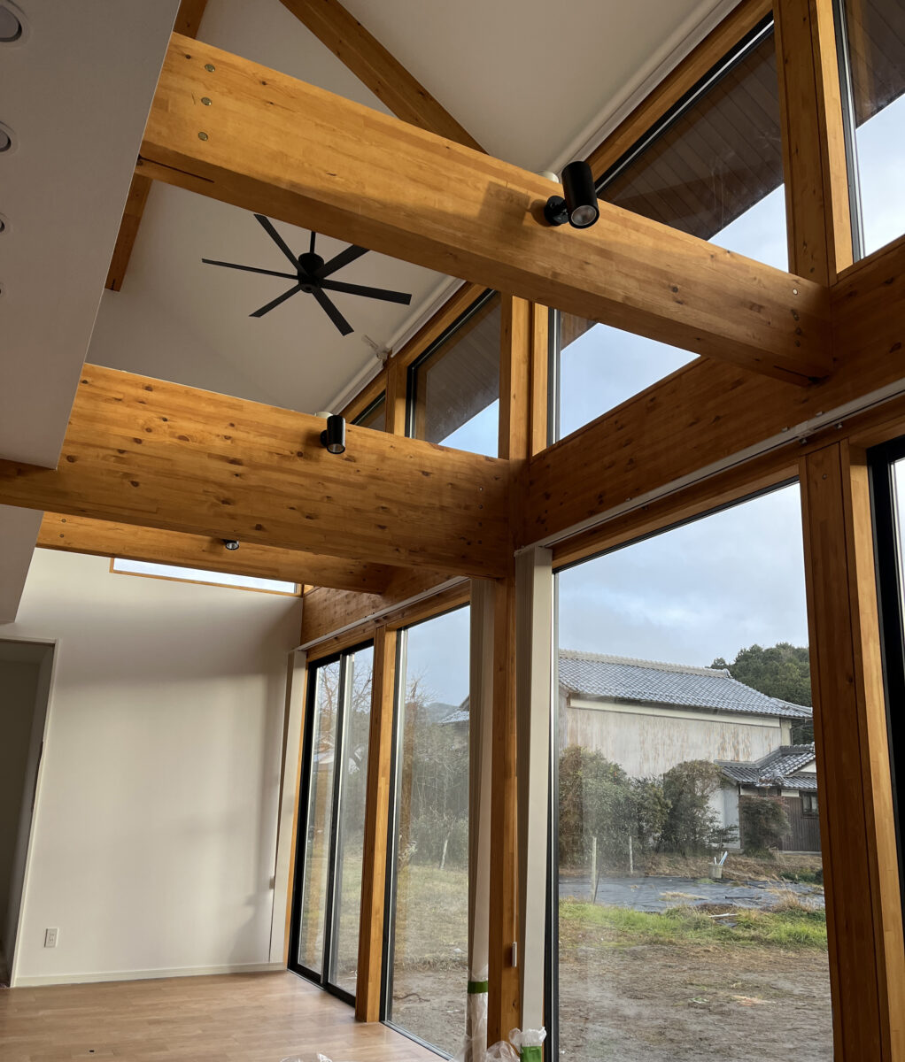滋賀県の自然豊かな環境に建つ、SE構法による二階建ての新築注文住宅。